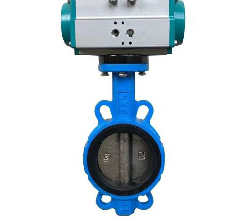 4、安裝完畢后,對D671J10-氣動蝶閥進行調試(正常情況下供氣壓力為0.4~0.6MPa),調試運行時須手動操作電磁閥啟閉(將電磁閥線圈失電后手動操作方可有效),觀察D671J10-氣動蝶閥的啟閉情況。如果在調試運行過程中發現閥門在啟閉過程初始時有些吃力,之后正常,則需要將氣缸行程調小(把氣缸兩端行程調節螺絲同時往里調一點,調整時需將閥門運行到開位置,然后將氣源關掉再調),閥門啟閉動作順滑且關閉無泄漏。還需要注意的是,可調型消音器可以調節閥門的啟閉速度,但不可調得過小,否則可能引起閥門不動作。