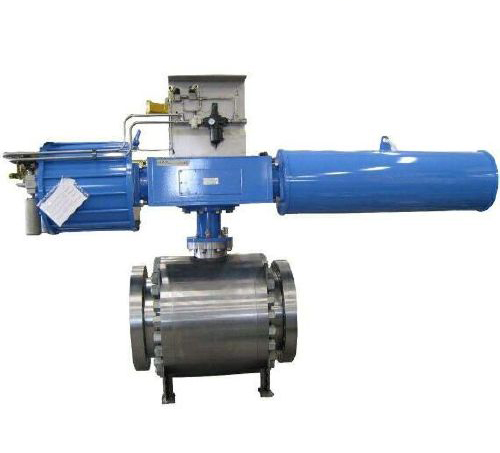Q647F40~63-彈簧復位氣動切斷球閥:氣動控制開關氣缸分為雙作用與單作用彈簧復位(當氣源壓力從氣口進入氣缸兩活塞之間中腔時,使兩活塞分離向氣缸兩端方向移動,迫使兩端的彈簧壓縮,兩端氣腔的空氣通過氣口排出,同時使兩活塞齒條同步帶動輸出軸逆時針方向旋轉。在氣源壓力經過電磁閥換向后,氣缸的兩活塞在彈簧的彈力下向中間方向移動,中間氣腔的空氣從氣口排出,同時使兩活塞齒條同步帶動輸出軸順時針方向旋轉。)鍛造閥體三段式結構,閥體設計按照API6D標準設計,法蘭連接的三段式固定式球閥,密封材質軟密封PTFE,硬密封STL合金,PN40~63壓力,通經2"-24"(美標),中法蘭用螺柱連接,上下閥桿均設有滑動軸承,減少磨擦,使用操作省力、平穩。在正常情況下:壓力低時閥座密封依靠彈簧 預緊力使閥座緊貼球體達到密封,壓力高時,在閥座上形成活塞效應,在上游介質壓力作用下,使閥座壓緊球體達到密封。 特別適合于介質是粘稠、含顆粒、纖維性質的場合。廣泛應用于石油、化工、教學設備、輕工、高壓設備、制藥、造紙等工業自動控制系統中,作遠距離集中控制或就地控制。